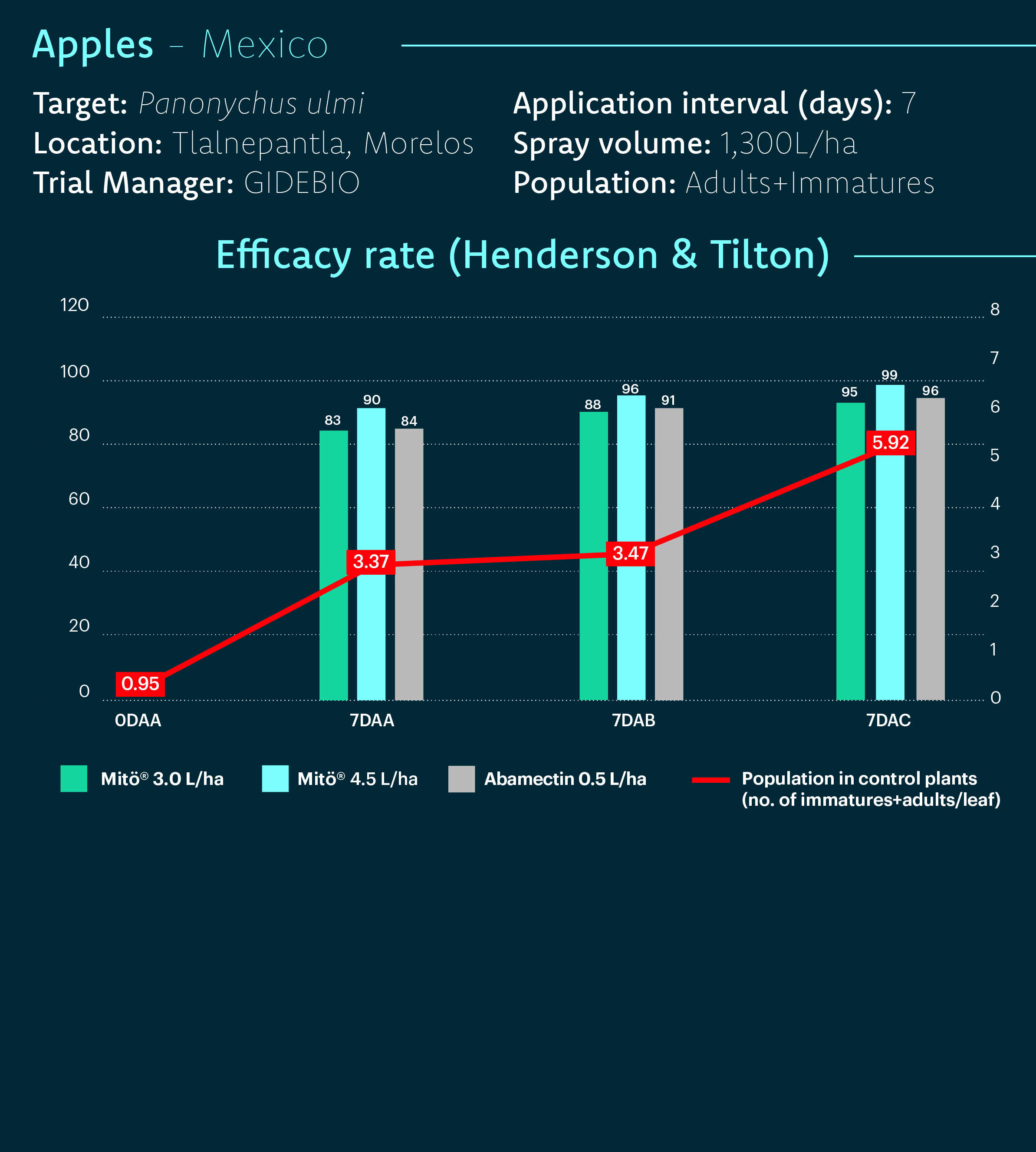 MITÖ ensures exceptional control for all agronomically relevant pest mites, exhibiting impressive direct contact mortality, repellency, anti-feeding, and anti-oviposition effects.